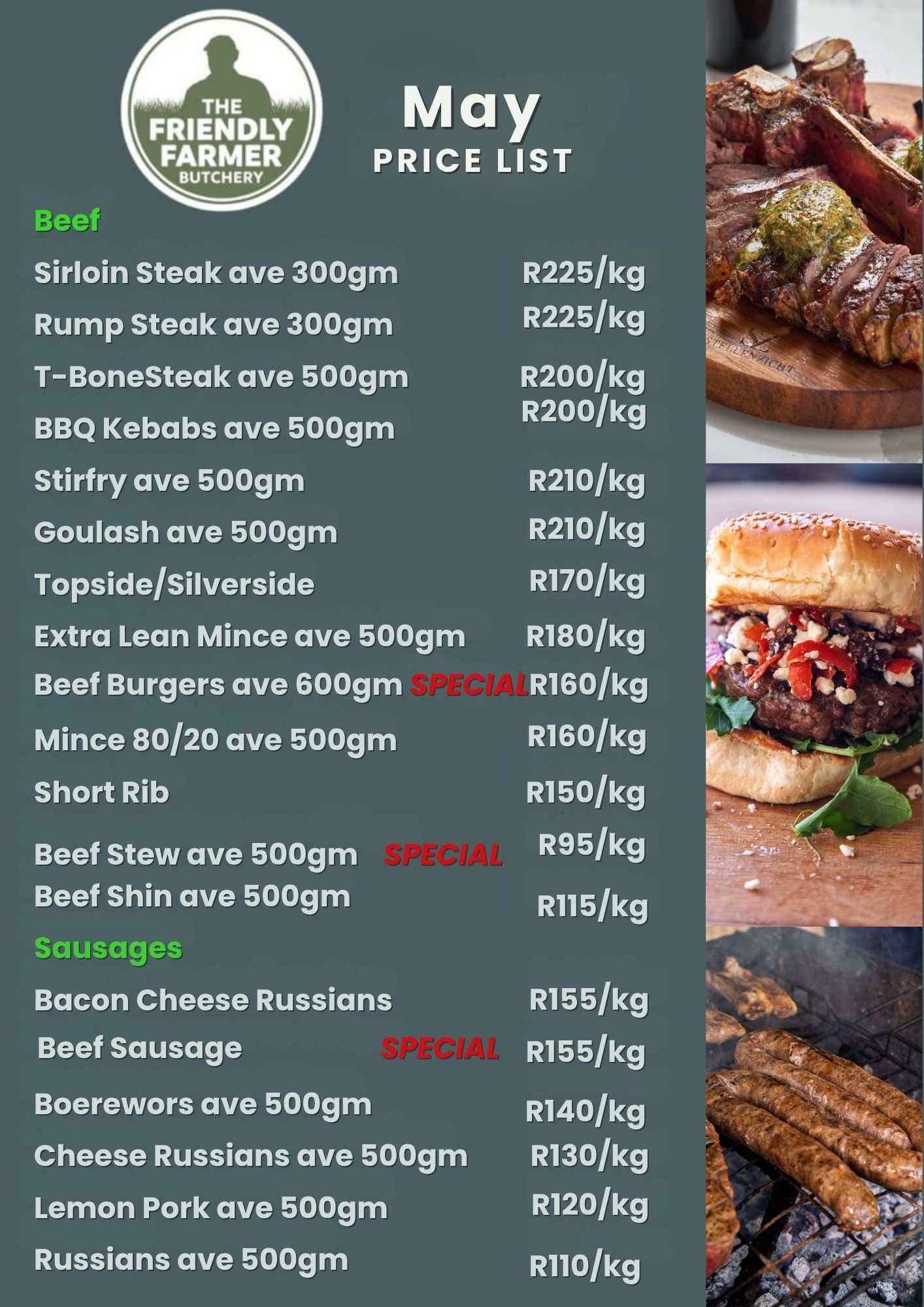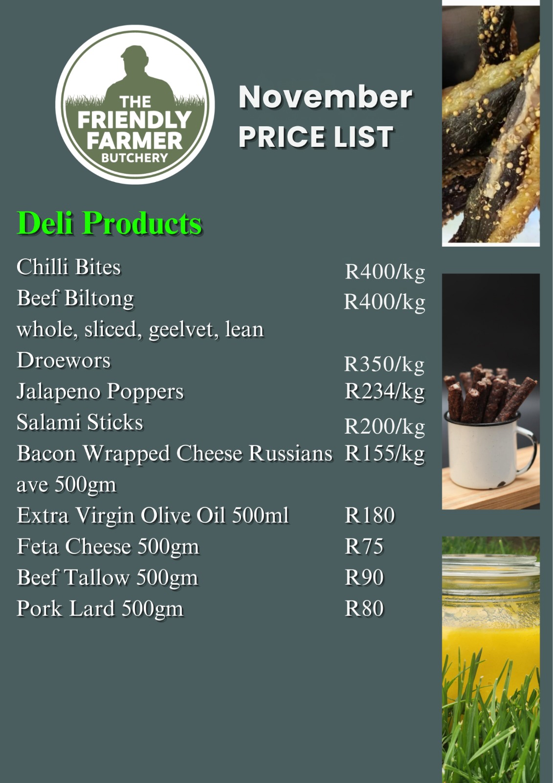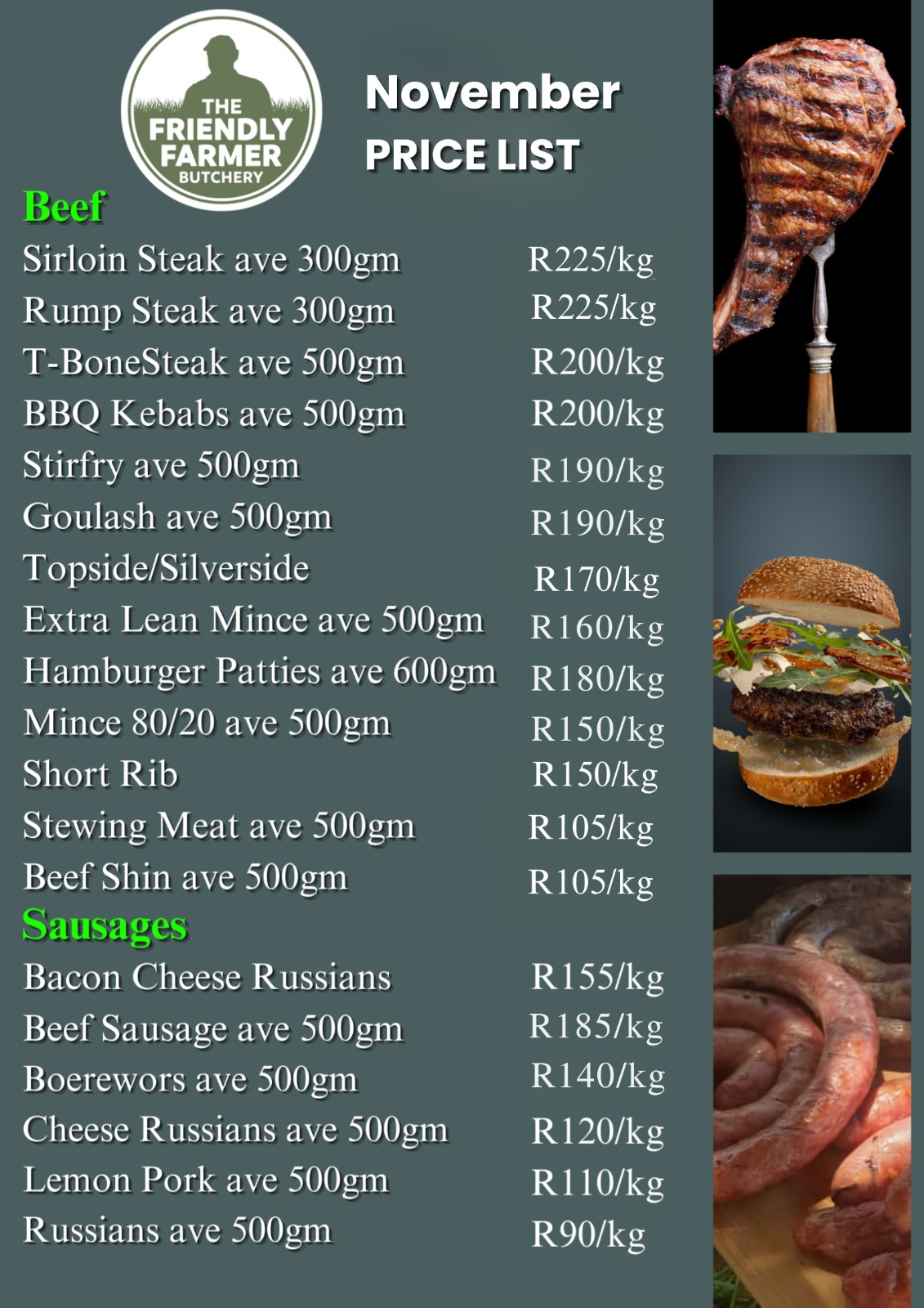 Pork Schnitzels, Rashers, Pork Belly, Cheese Russians, Loin Chops, Curried Pork Chops, Russian Boerewors, Lemon Pork Sausages