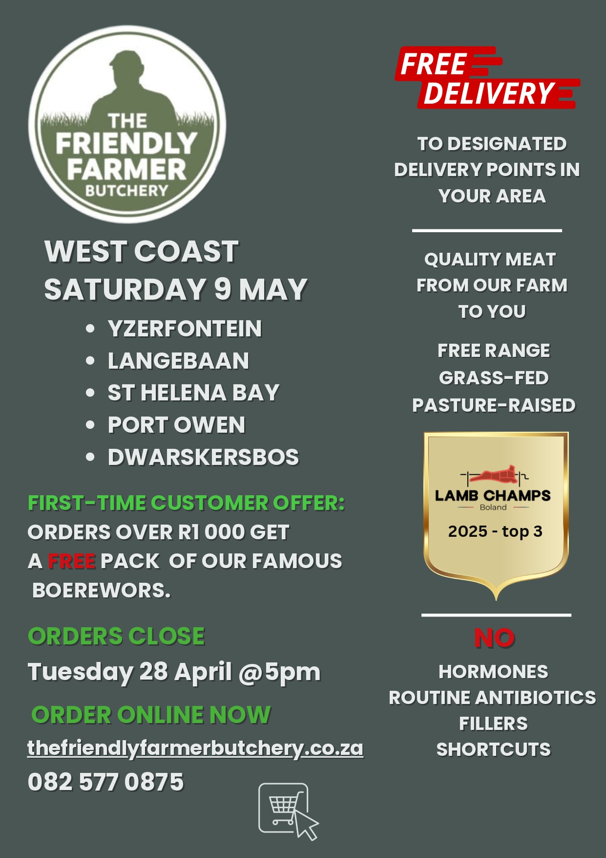 ORDERS CLOSE: 28 April 2026 (5pm) Next delivery: 7 May 2026